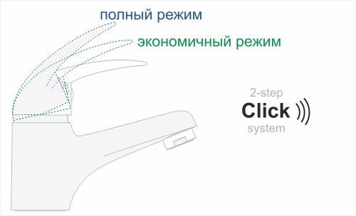 В смесителях Aller 1068, Leine 3508, Main 4108 используются двухступенчатые керамические эко-картриджи Sedal (Испания) 35 мм, с функцией экономии воды. Экономия воды достигается путем регулирования положения ручки смесителя. Первая ступень до небольшого щелчка (среднее положение ручки) включает воду в экономичный режим. Вторая ступень после небольшого щелчка (верхнее положение ручки) переключает воду на полный режим работы картриджа.