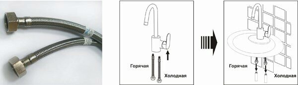 В комплект к смесителям для кухни, умывальника и биде входит: