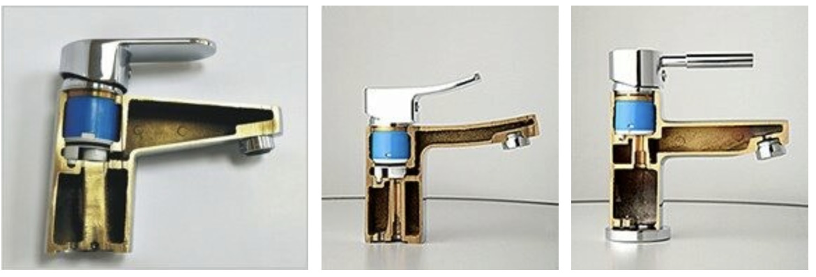 В наших смесителях мы используем керамические картриджи Sedal (Испания) диаметром 40 мм, 35 мм или 25 мм, керамические картриджи Hent диаметром 25 мм и керамические кранбуксы 90° или 180° , в зависимости от модели смесителя.