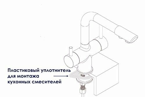 Пластиковый уплотнитель в комплекте к смесителям для кухни (в зависимости от модели) поможет установить изделия плотно даже на стальной мойке малой толщины